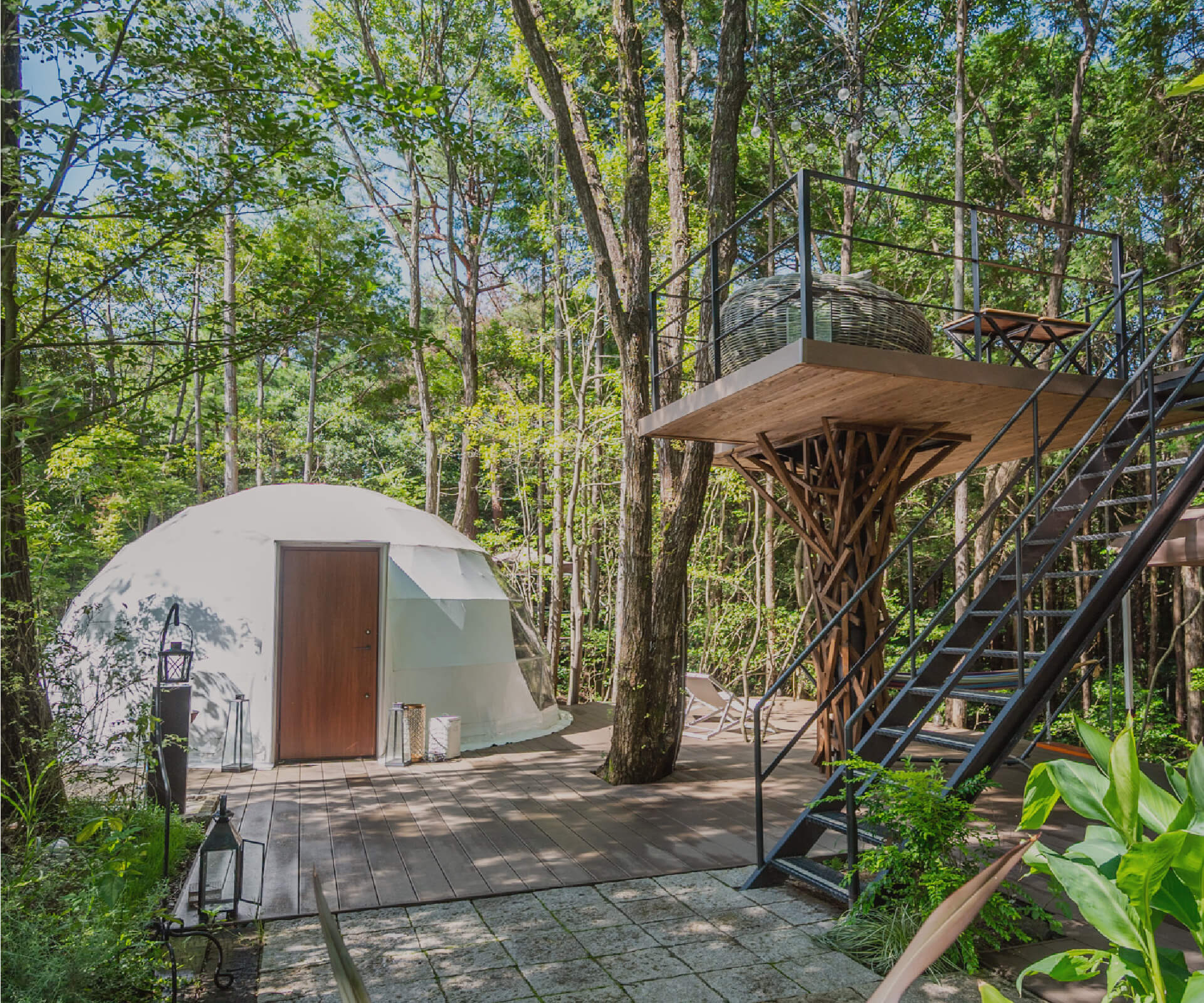 大切なワンちゃんと大自然の中でグランピングが体験頂けます。 家族の一員であるワンちゃんと同じテントで宿泊、専用のドッグランで思う存分遊ぶことも可能です。 四季折々の表情を見せる自然の中で思い出の時間を作ってください。