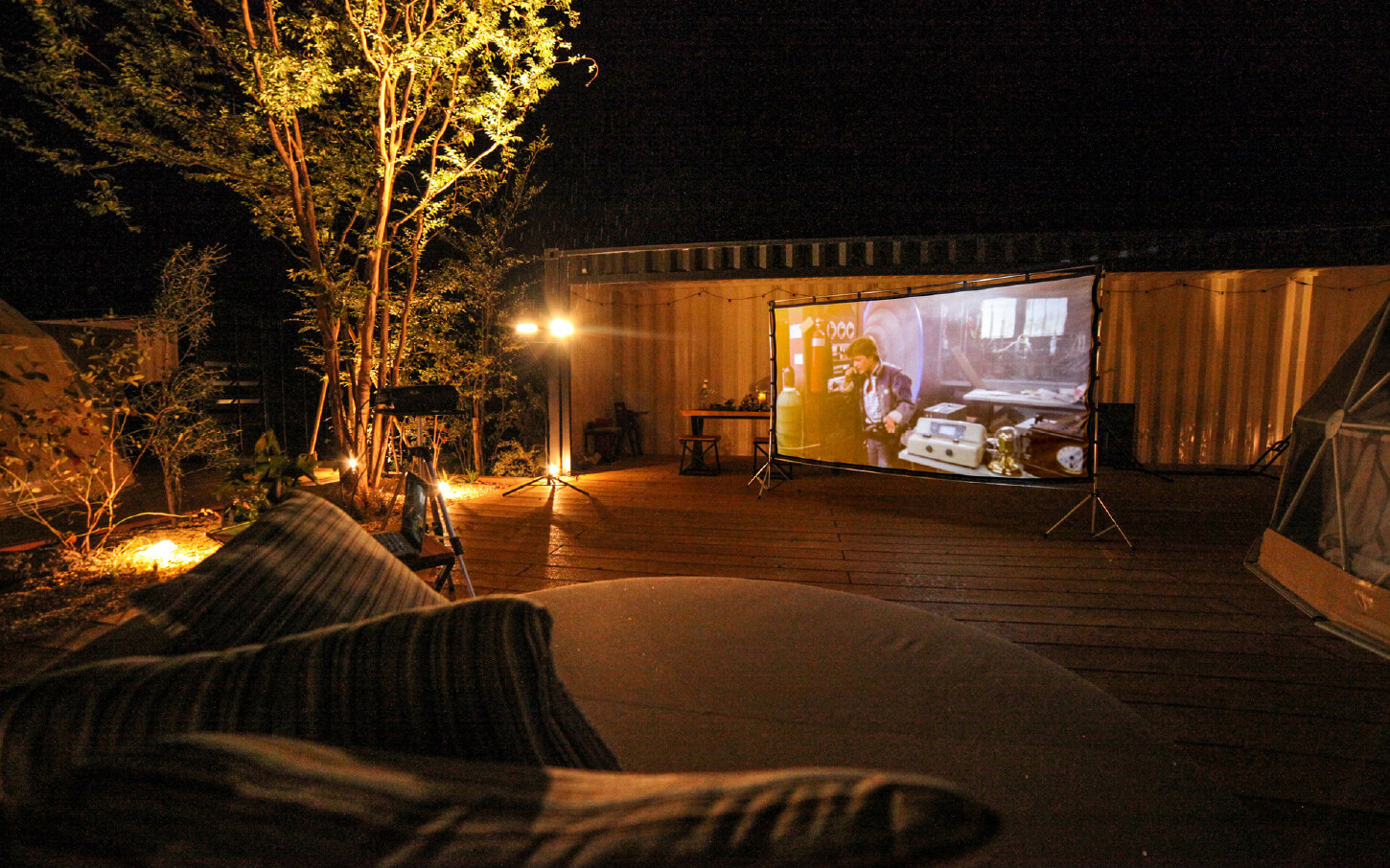 野外で映画を楽しむ事もできます。 天候にも恵まれ、星空の下お酒と映画を楽しんでいらっしゃいました。 その日の上映作品はミッドナイト・イン・パリでした。おしゃれ…!