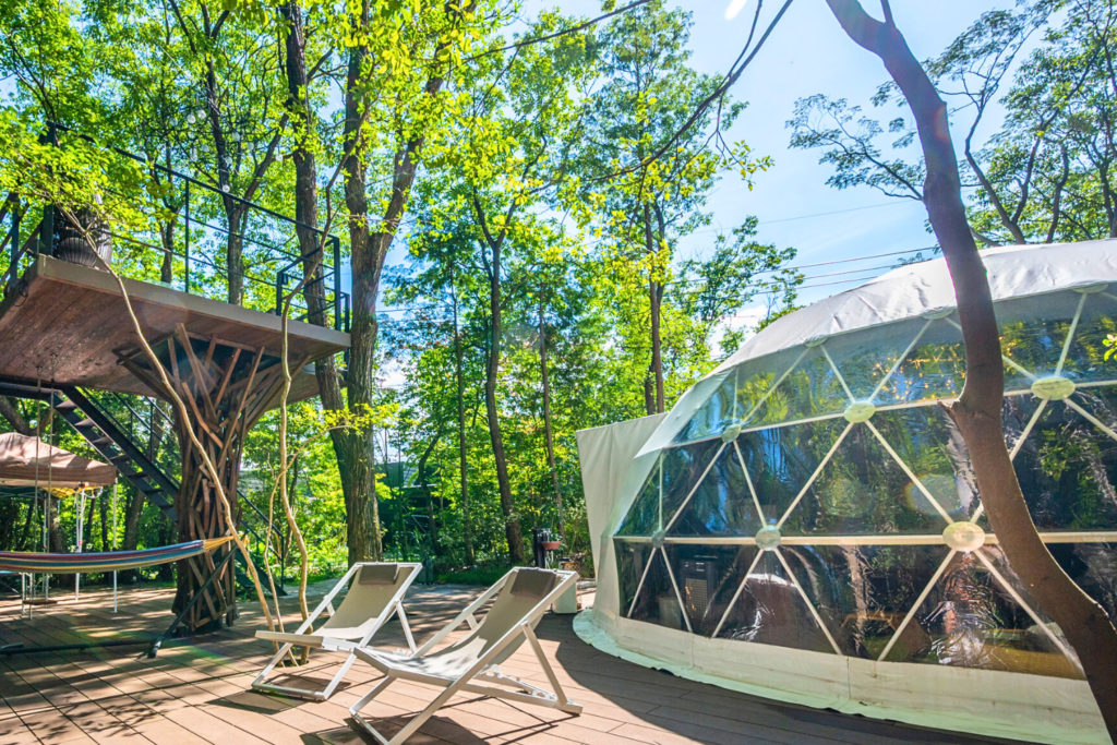 自然環境に囲まれたグランピング施設。